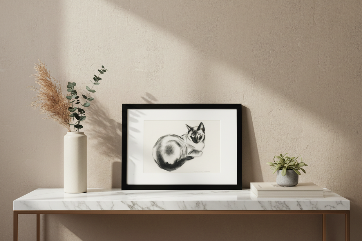 Clare Newberry "SEAL POINT" / クレア・ニューベリー アートプリント シャムねこポスター (額入)